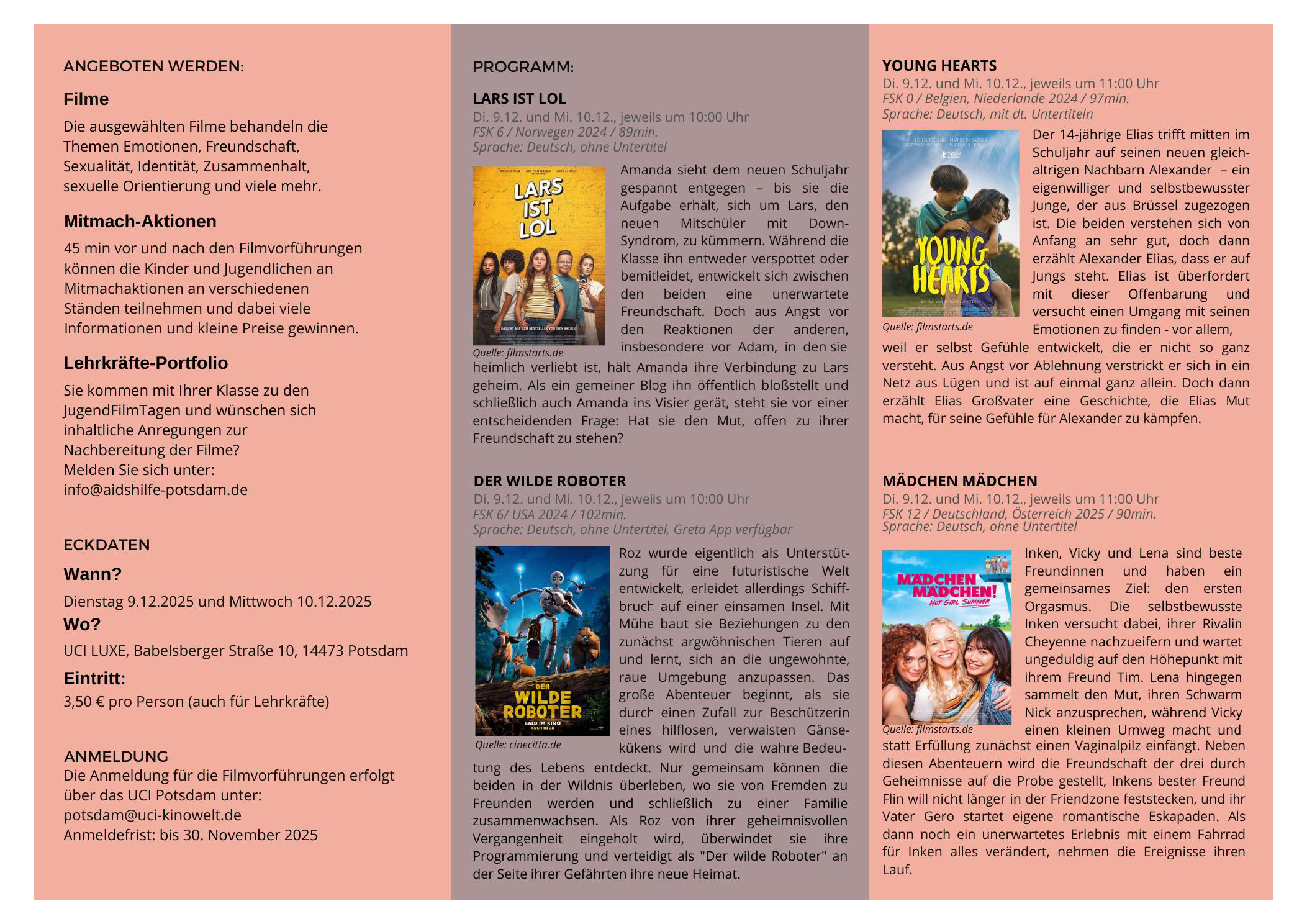 JugendFilmTage am 9.12 und 10.12.2025 im UCI Kino