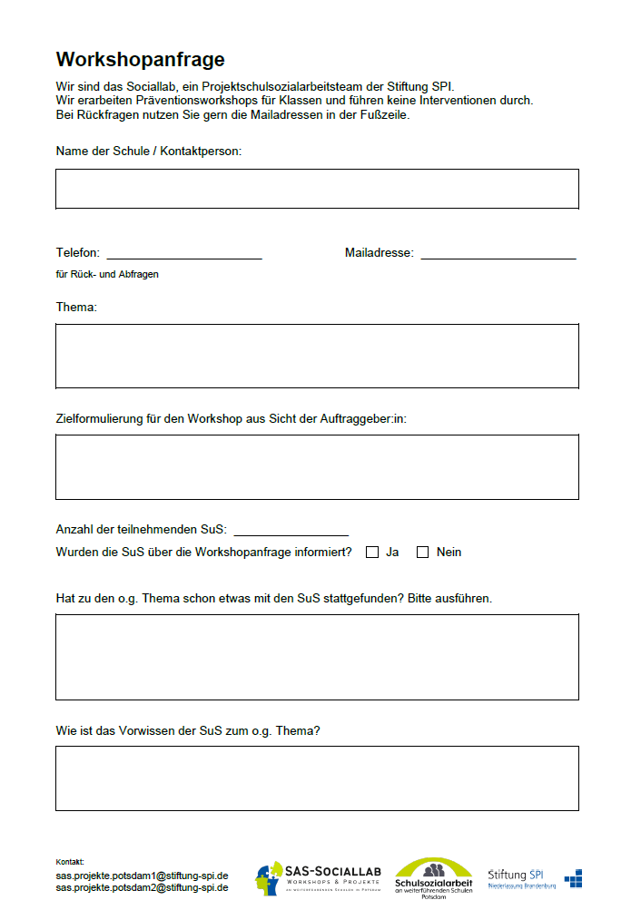 Anmeldungsbogen für Workshops